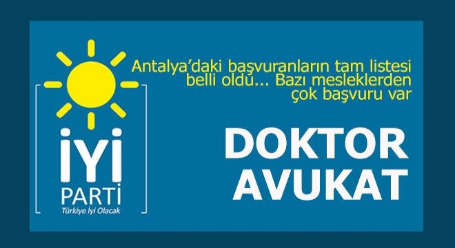 2 bin 800 kişinin aday adaylığı başvurusu yaptığı İYİ Parti sürece damga vuran parti oldu. CHP ve MHP'yi başvurularda geride bırak İYİ Parti'de Antalya'dan aday adaylığı başvurusu yapanların isimleri açıklandı.