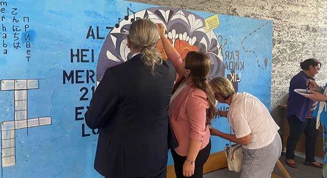 Etkinlik sonunda katılımcılar, günlük yaşantının koşuşturması içinde stresle baş etmeyi kolaylaştıran, dikkati yoğunlaştırarak odaklanmayı sağlayan mandala tekniğiyle duvara resim yaptılar.