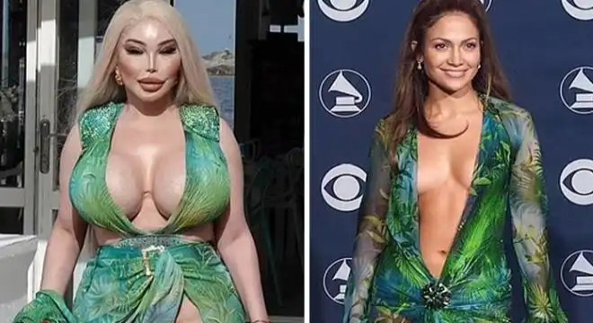 Jennifer Lopez'in Donatella Versace tarafından tasarlanan ve 42'nci Grammy Ödülleri töreninde giydiği kıyafet, hala daha ününü koruyor. Dikkat çeken yeşil elbisenin bir taklidini edinen Brezilyalı televizyon yıldızı Jessica Alves, daha sonra Jennifer Lopez'in o görüntüsüne benzemek için 100 ameliyat geçirdi. Daily Mail'in aktardığına göre ameliyatların bedeli 1 milyon doları geçti.