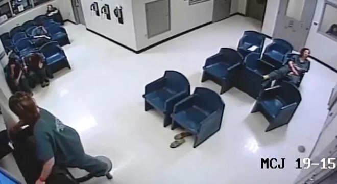 Ohio eyaletinin Dayton kentindeki Montgomery County Hapishanesi’nde 42 yaşındaki Jessica Boomershine adlı kadın mahkum, hapishanenin bekleme salonu bölümünde bulunan koltuğu duvar kenarına çekti. Koltuğun üstüne çıkarak tavanda bulunan havalandırma borusuna giren kadın mahkum polis tarafından fark edildi. Görüntülerde, kadın mahkumun havalandırma borusundan sarktığı, polisin ise kadının bacaklarından tutarak aşağıya çekmeye çalıştığı görüldü.