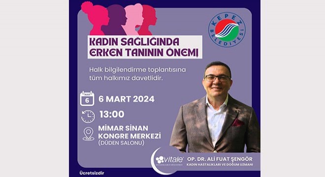 Kepez’de ‘Kadın Sağlığında Erken Tanının Önemi’ anlatılacak. Kepez Belediyesi ve Vitale Kadın Hastalıkları ve Doğum Hastanesi işbirliğiyle kadınların bilgilendirileceği bir halk toplantısı düzenlenecek. Mimar Sinan Kongre Merkezi’nde 6 Mart 2024 Çarşamba günü saat 13.00’da gerçekleştirilecek bilgilendirme toplantısında Kadın Hastalıkları ve Doğum Uzmanı Ali Fuat Şengör, katılımcıların sorularını yanıtlayacak.
