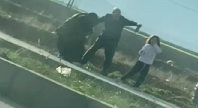 Olay, saat 09.00 sıralarında D-400 kara yolu Kürkçüler mevkisinde yaşandı. Aynı aileden oldukları düşünülen, kimlikleri belirlenemeyen çift ile kadın, hafif ticari araçta yolculuk yaparken tartışmaya başladı. Sürücüden aracı durdurmasını isteyen kadın araçtan indi. Araca binmeye ikna edemedikleri genç kadını darbeden çift, onu saçlarından sürükleyerek bindirmeye çalıştı. Bu sırada araçtaki kız çocuğu da inerek, çifte engel olmaya çalıştı. Adam, çocuğa tokat attı. Genç kadını araca bindiren çift daha sonra yolculuğa devam etti. Yaşananları cep telefonuyla görüntüleyen çevredekiler, 112 Acil Çağrı Merkezi'ne de ihbarda bulundu. Çiftin yakalanması için çalışma başlatıldı.