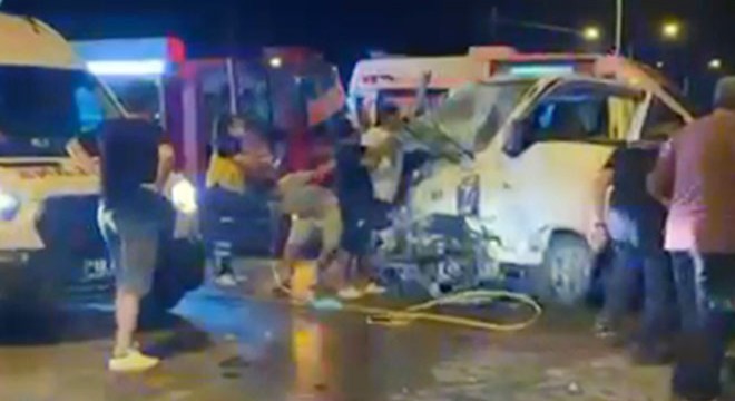 Kazada kamyonet sürücüsü Ferhat K. ile yanında bulunan kadın ve minibüste bulunan 6 işçi yaralandı. Kazayı gören çevredekiler kamyonette sıkışan sürücü ile yanında bulunan kadını kurtarmaya çalışırken, durumu sağlık ekiplerine bildirdi. İhbar üzerine olay yerine çok sayıda sağlık, itfaiye ve polis ekibi sevk edildi. İtfaiye ekiplerinin çalışmasıyla kamyonette sıkıştıkları yerden çıkarılan sürücü ile yanındaki kadın sağlık ekiplerine teslim edildi. Sağlık ekiplerince olay yerinde ilk müdahalesi yapılan yaralılar ardından çevredeki hastanelere sevk edildi. Olası bir başka kaza ihtimaline karşı polis ekipleri yol üzerinde önlem aldı.
