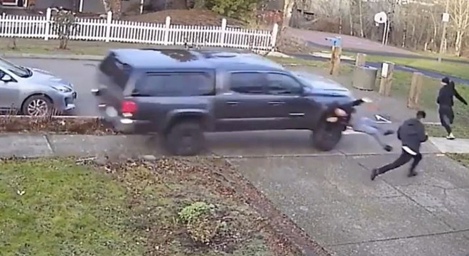 Portland kentinde meydana gelen olayın görüntüleri bir evin güvenlik kamerasınca kaydedildi. Görüntülerde, kaldırımda yürümekte olan üç genç görülüyor. Daha sonra kaldırıma çıkarak üzerlerine doğru gelmekte olan kamyoneti fark eden gençler, kaçmaya başlıyor. Ancak, kamyonet süratle ilerlediği için geçlerden ikisi kaçmayı başarsa da en arkadaki kişi kamyonetin hedefi olmaktan kurtulamıyor. Kamyonetin çarptığı genç ayağa kalkarak diğer arkadaşıyla birlikte kaçmaya devam ederken, kamyonet sürücüsü de ara sokağa girerek kaçtı.