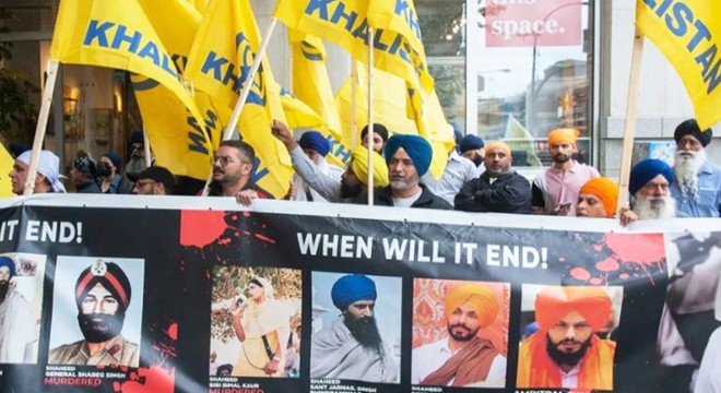 Nijjar, kuzey Hindistan’ın bazı bölgeleri ile Pakistan’ın bir kısmını kapsayacak bağımsız bir Sih devletinin kurulmasını savunuyordu. Neredeyse tamamı erkeklerden oluşan göstericiler, ayrılıkçı hareketlerini temsil eden mavi logolu sarı bayraklar altında “Khalistan! Khalistan!” diye slogan attılar. Öte yandan konsolosluk önünde toplanan küçük bir kalabalık da “Khalistan yanlıları” aleyhine gösteri yaptı.