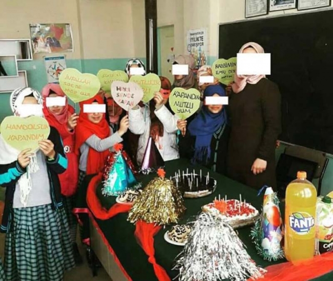 Sosyal medyada paylaşılan ve hangi okulda çekildiği belli olmayan fotoğraflar TBMM'ye taşındı. CHP İstanbul Milletvekili Barış Yarkadaş, bugün bir öğretmenin kendisine yolladığı fotoğrafları medyayla paylaştı. Küçük yaştaki çocuklara "türban takmalarını kutlama partisi" düzenlendiğini belirten Yarkadaş, "Çocuklarımız ağır bir istismarla karşı karşıya" tepkisini gösterdi.