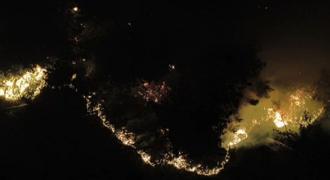 Havanın kararmasıyla havadan müdahaleye ara verildi. Yer ekipleri, yangını kontrol altına almak için çalışmalarına devam ediyor.