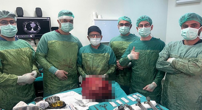 Prof. Dr. Alim Koşar, "Halsizlik, bulantı, karında şişlik, iştahsızlık gibi şikayetlerle bize başvuran hastamıza yapılan tetkikler sonucunda büyük boyutta kitle saptandı. Yaklaşık 35- 40 santim civarında bir kitleydi. Bu tür kitlelerde tek tedavi şansı, cerrahi müdahale ile tamamen çıkarmaktır ki hastaya fayda sağlayabilsin. Ameliyat kararı verdik fakat çok riskli bir ameliyattı. Çünkü tüm karnı dolduran bir kitleydi. Tüm organlar ve damarlarla iç içe olan bir kitleydi. Organlara zarar vermeden, ciddi bir kanamaya sebep olmadan çıkarmak ve kitleyi tamamen temizlemek çok önemliydi. Bu tür kitlelerin cerrahisi, alanında uzman tecrübeli ekip gerektirir. Ciddi komplikasyonlara açık ameliyatlardır. Kitleyi bütün bir halde ve hiçbir parça bırakmadan başarılı bir ameliyatla aldık. Sorunsuz bir operasyon gerçekleştirdik. 30 yıllık meslek hayatımda batın içinden çıkarttığım en büyük kitle" dedi.