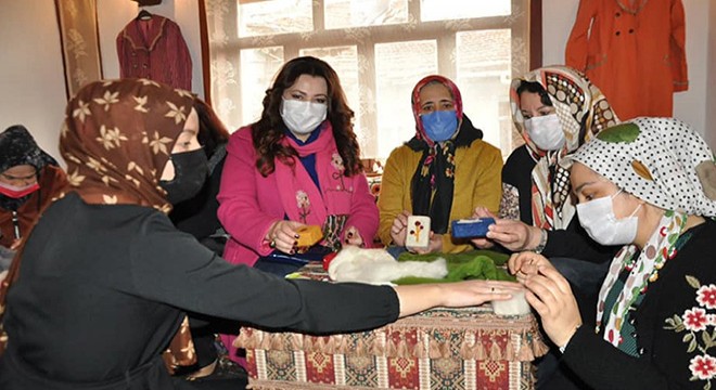 Kaymakam Eflatun Can Tortop beraberinde Belediye Başkanı Mustafa Çöl ile birlikte Kadın Kültür Evi'ni çalışma yürüten kadınları ziyaret etti. Ziyarette Kaymakam Tortop ve Belediye Başkanı Çöl, kadınların keçeden ürettikleri sabun çalışmalarını inceleyerek bir müddet çalışmalara katıldı.
