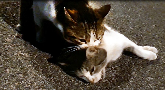 Isparta'nın Çünür Mahallesi'nde dün akşam meydana gelen olayda, bir aracın çarptığı tahmin edilen kedi can verdi. Yol ortasında hareketsiz kalan kedinin başından ayrılmayan başka bir kedinin hareketleri dikkati çekti. Yerde yatanın başından ayrılmayan, ses çıkararak ona dokunan ve koklayarak kaldırmaya çalışan kedinin çabaları görenleri hüzünlendirdi.