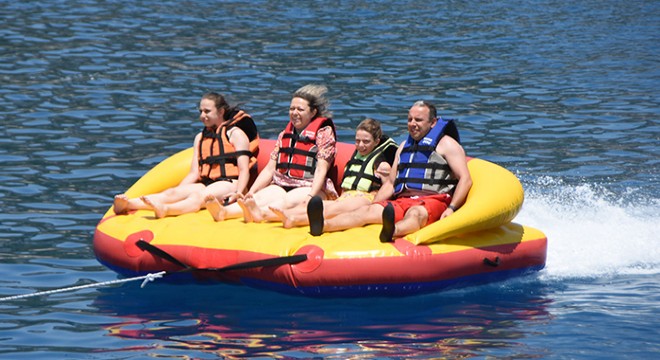 Kekova bölgesinin doğal bir limanı olan Gökkaya Koyu, günübirlik tura çıkan teknelerin mola yeri. Mavi yolculuk teknelerinin bir iki gece mola verdiği, denizi ve doğası ile muhteşem bir koy olan Gökkaya'ya her gün yüzlerce yat geliyor. Koya gelen turistlere bir firma tarafından su sporları yaptırılıyor. Bu sporlardan bir de ringo. Turistler sürat teknesinin çektiği ringo adı verilen şişme bir bota bindiriliyor. En fazla 4 kişinin binebildiği ringo, sürat teknesi tarafından çekilirken, 25-30 mil hıza ulaşıyor. Bu yolculuk açık denizde yaklaşık 15 dakika sürüyor. Bu tur için yolcu başı 75 lira ücret alınıyor.