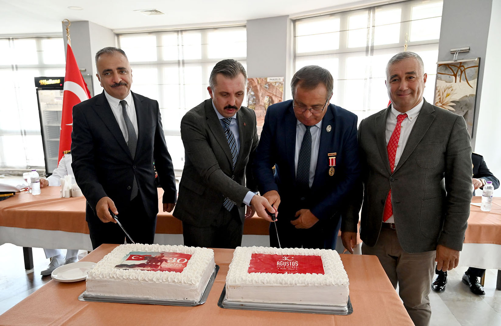 Tören sonrası Kaymakam Solmaz, Başkan Vekili Akın ve protokol üyeleri, bir otelde düzenlenen programa katıldı. Programda, Kaymakam Solmaz, tebrikleri kabul etti. Kaymakam Solmaz, "Bugünlerin anlam ve önemini hem değersel anlamda hassasiyetle içimizde beslediğimiz güzel duygularla anını yaşatmaya çalışıyoruz hem de vatanımızı bize vatan yapan ve yurt edinen aziz şehitlerimizi anmak için bir fırsat buluyoruz. Bu güzel vatan ve bayrak için canlarını feda eden tüm şehitlerimize Allah'tan rahmet diliyoruz. Başta kurucumuz Gazi Mustafa Kemal Atatürk olmak üzere tüm silah arkadaşları, aziz vatanın sınırlarını son ana kadar koruyan asker ve sivillere rahmet diliyoruz. Gazilerimize de sağlık sıhhat diliyoruz. 30 Ağustos Zafer Bayramımız kutlu olsun" diye konuştu. Program, '30 Ağustos Zafer Bayramı Kutlu Olsun' yazılı pasta kesiminin ardından sona erdi.