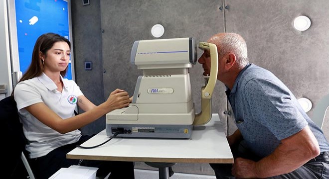 Mobil sağlık merkezinde, göz sağlığı taramasında vatandaşların görme bozuklukları ve göz tansiyonu ölçümü yapılıyor. Tedaviye ihtiyaç duyan hastalara da kamu hastanelerine yönlendiriliyor.