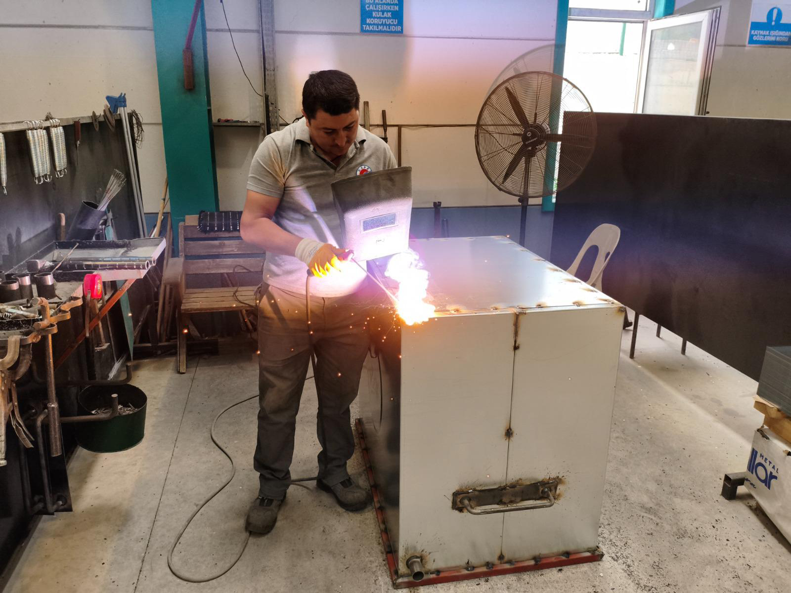 Kepez Belediyesi Temizlik İşleri Müdürlüğü bünyesinde hizmet veren Çöp Konteyner Üretim Atölyesi ile önemli bir tasarruf sağlanıyor. Kamu kaynaklarının etkin ve verimli kullanılması amacıyla Kepez Belediyesi, her türlü konteyner ihtiyacını kendi iş gücü ve imkanlarıyla sağlıyor. Çöp Konteyner Üretim Atölyesi’nde görev yapan 15 kişilik uzman ekip, çöp konteyner üretiminin dışında, aylık 40 sanayi tipi kazan üretiyor. Sanayi siteleri, büyük depolar ve ihracatçı firmaların ihtiyaç duyduğu, 4 metre küp hacmindeki atık toplayabilen bu kazanlar, belediye çalışanlarının usta ellerinde şekilleniyor. Büyük çöp toplama haznesine sahip kazanlar, çevre temizliğinde önemli bir rol üstleniyor. Sadece sanayi kazanı üretimiyle sınırlı kalmayan atölye, aynı zamanda aylık ortalama 200 mahalle, cadde ve sokak tipi çöp konteyneri üretiyor. Bununla birlikte, sahadaki mevcut konteynerlerin bakım, onarım ve yeniden değerlendirilmesi de atölye tarafından yapılıyor. Çürüyen konteynerler atılmak yerine, yenilenerek yeniden hizmete sunuluyor. Bu geri dönüşüm ile aylık 150 konteyner üretimi gerçekleştiriliyor. Kepez Belediyesi, eskiyen, yıpranan her türlü atık ekipmanını yeniden değerlendirerek bir yandan da kamu kaynaklarının israfını önlüyor.