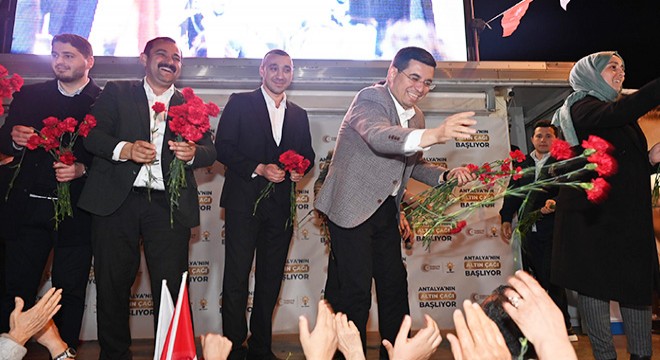 Konuşmaların ardından AK Parti Antalya Milletvekili Mustafa Köse, Cumhur İttifakı’nın Antalya Büyükşehir Belediye Başkan adayı Hakan Tütüncü ve Kepez Belediye Başkan adayı Rıza Sümer vatandaşlara kırmızı karanfil attı.