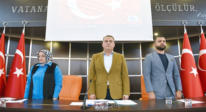 Belediye Meclis Salonu’nda yapılan toplantı, yoklama, saygı duruşu ve İstiklal Marşı’nın okunmasıyla başladı.