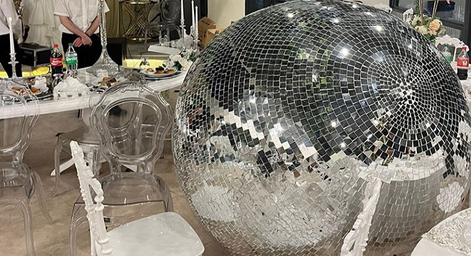 Öte yandan, kına gecesi cep telefonu kamerasıyla da kaydedildi. Görüntülerde, gelin ve damadın davetlilerle birlikte eğlendiği, dev disko topunun ise hemen üzerlerinde bulunduğu anlar yer aldı.