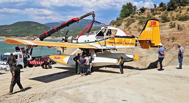Olayın ardından uçağın kaldırılması için çalışma başlatıldı. Baraj gölünün ortasında ters dönen uçak, dün ekiplerin çalışmasıyla kıyıya yanaştırıldı. Bugün ise uçağın karaya çıkarılması için çalışma başlatıldı. Göl kıyısına vincin yanaşması için bölgede düzleme çalışmaları yapıldı. Ardından vinçle kaldırılan uçak, karaya çıkarıldı. Uçağın nakliyesi için Hava Kuvvetleri Komutanlığı'na ait askeri helikopterden destek istendi. Uçağın askeri helikopterle Antalya'ya götürüleceği öğrenildi.