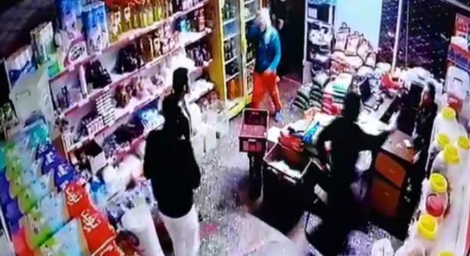 Öte yandan marketteki gasp anı, güvenlik kamerasınca saniye saniye kaydedildi. Görüntülere göre, market sahibi ile içeride 2 kişi bulunurken, önce yüzleri maskeli 3 kişi markete giriyor. Direkt market sahibinin bulunduğu masaya yönelen 3 kişiden 2'sinin elinde bıçak olduğu görülüyor. Afganlar, market sahibini dövmeye başlarken, 2 müşteri ise koşarak, olay yerinden uzaklaşıyor. Daha sonra 4'üncü kişi, markete girerek, kapıyı kapatıyor. Bu sırada diğer 3 kişi de market sahibini dövmeye devam ediyor.