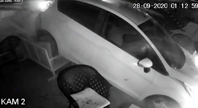 Öte yandan kaza iş yerinin güvenlik kamerası tarafından görüntülendi. Görüntüde, otomobil, gece olduğu için boş olan iş yerine hızla giriyor.