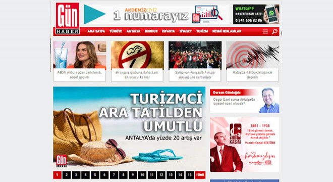 Konyaaltı Belediyesi 10 Kasım Atatürk'ü anma banneri Gün haber'de yayınlanmış hali