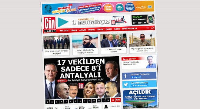 Konyaaltı Belediyesi 19 Mayıs Bayramı reklamının Gün Haber sayfasında görüntüsü