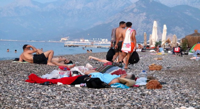 Arkadaş grubuyla sahilde sabahlayan Hüseyin Gönen, "Sahile arkadaşlarımızla sıcak havadan dolayı sabahlamaya geldik. Geceden geldik ve burada kaldık. Sabah denize girip, serinliyoruz. Sonrasında ise evimize gidiyoruz" dedi.