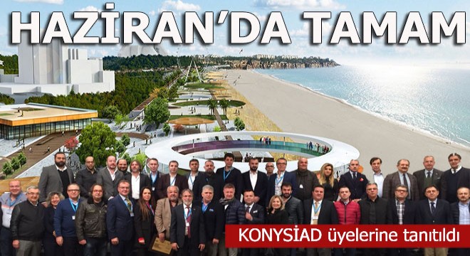 Konyaaltı Sanayici ve İş Adamları Derneği'nin, Rixos Downtown Otel'de gerçekleştirdiği toplantıda, "Konyaaltı Projesi" tanıtımı yapıldı. Tanıtıma, Kurucu Başkan İlhami Kaplan, Mimar Şemsettin Tugay ve dernek üyelerinin yanı sıra, Yönetim Kurulu Başkanı İlhami Kaplan, Yönetim Kurulu Başkan Yardımcıları Salih Peker, Zeki Özen, Sayman Mustafa Öğretmenoğlu, Genel Sekreter Gökçen Deveci katıldı. Mucip Ürger ve ortağı Ali Özer ile birlikte Konyaaltı Sahili Projesi yarışmasına katıldığını ifade eden Şemsettin Tugay, “Beş buçuk ay gibi kısa bir sürede bir milyon metrekarenin planlaması tamamlandı” şeklinde konuştu