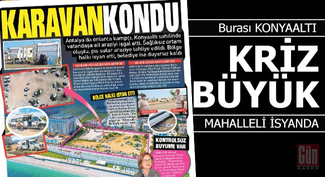 Sabah Akdeniz'in haberine göre, Antalya'nın Konyaaltı ilçesinde bulunan boş araziyi işgal eden karavancılar, kontrolsüz bir şekilde büyüyor. İlk başta 3-5 civarında olan kampçıların sayısı 40'ı geçti. Gürsü Mahallesi'nde sahile sıfır noktasındaki Crown Plaza ve Harrington Park Otel ile evlerin arasına oluşturulup adeta köyü andıran karavan kondular bölgede huzuru kaçırdı.