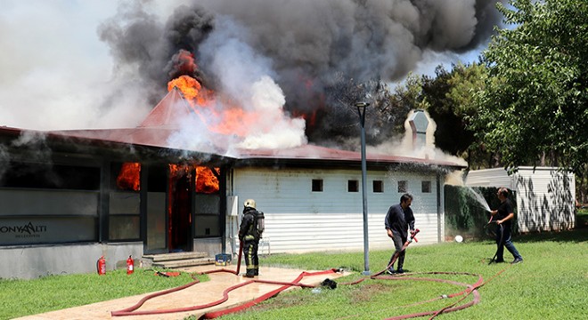 Konyaaltı ilçesi Öğretmenevleri Mahallesi 957 Sokak'taki Hayat Park'ta bulunan Konyaaltı Belediyesi'ne ait restoranda saat 11.30 sıralarında yangın çıktı. Restoranın bacasından çıkan yoğun dumanı gören belediye çalışanları, durumu 112 Acil Çağrı Merkezi'ne bildirdi.