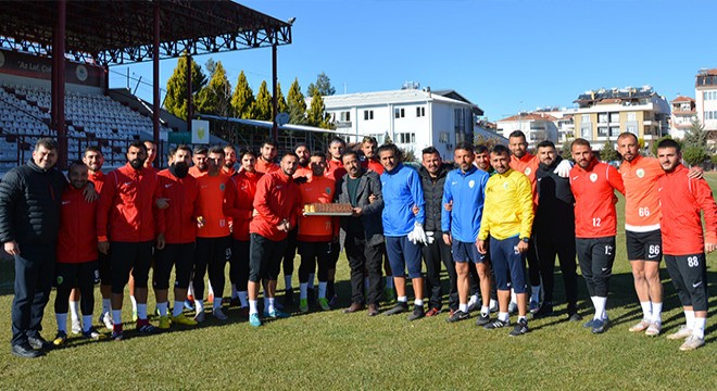 Antrenmanı ziyaret eden ilçe esnaflarından Ömer Topal futbolculara tatlı ikram etti.