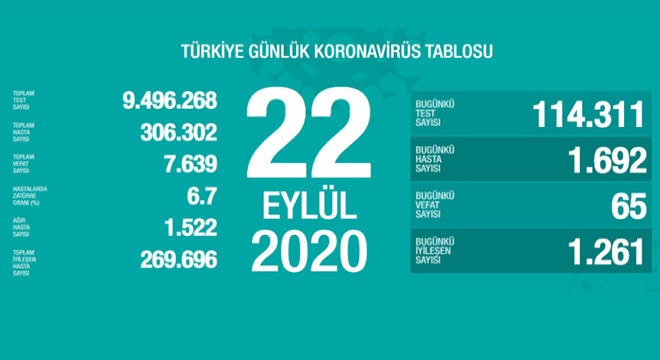 Bakan Koca "Ağır hasta sayımız 1.522’ye ulaştı. Zatürre oranında düşüş devam ediyor. Bugün 1.692 yeni hastamız var. Tedbirlere uygun hareket ederek gecesi gündüzü bizim için çalışmakla geçen sağlık çalışanlarımıza destek verelim. Birlikte başaracağız."