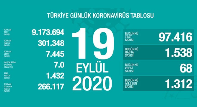 Koronavirüsten bugün 68 kişiyi kaybettik