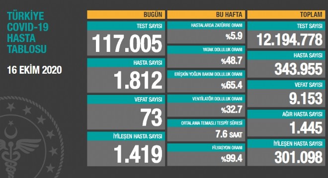 Sağlık Bakanı Fahrettin Koca: "Bugün tespit edilen 1.812 hastamız var. Ağır hasta sayımız uzun bir aradan sonra artış eğiliminde. Vaka sayısı artan illerde tedbirlere uyup azalan illerde tedbirlerden taviz verirsek mücadelemiz güçleşir. Tüm bölgelerimizde tedbirlere eksiksiz uymalıyız."