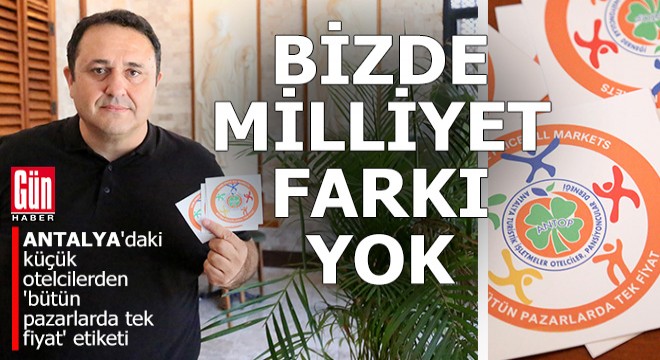 Bunu deklare etmek için ANTOP olarak farklı renklerde insanları ve milletleri simgeleyen ve üzerinde İngilizce ve Türkçe 'Bütün pazarlarda tek fiyat' yazılı etiketler hazırlattıklarını anlatan Alp Özel, "Derneğimiz bünyesindeki otellerde bütün pazarlarda tek fiyat uygulandığına yönelik etiketleri otellerimizin girişine asıyoruz, web sitemizde de belirtiyoruz. En azından misafirlerimizin böyle bir endişeleri varsa da kapıda bu endişeden kurtulmalarını istedik" diye konuştu.