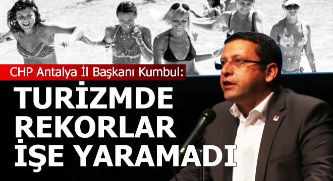 CUMHURİYET Halk Partisi (CHP) Antalya İl Başkanı Ahmet Kumbul, Antalya özelinde turizmin 12 aya yayılamaması, sezon bittiğinde çalışanların yüzde 98'inin işsiz kalması, dolar bazında kişi başına harcama ortalamasının her sene düşmesi gibi etkenleri yan yana getirdiklerinde turizmde kırılan rekorların pek bir işe yaramadığını gördüklerini söyledi.