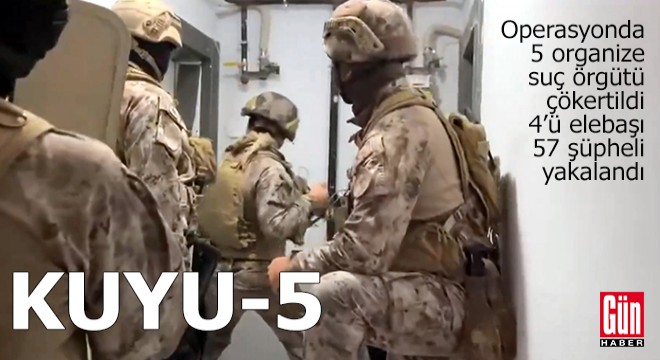 Bakan Yerlikaya, sosyal medya hesabından yaptığı açıklamada, Emniyet Genel Müdürlüğü Kaçakçılık ve Organize Suçlarla Mücadele Başkanlığı koordinesinde, 4 ilde İl Emniyet Müdürlükleri tarafından 'Kuyu-5' operasyonları düzenleneceğini belirtti. Buna göre; 'Silahlı saldırı', 'Yağma', 'Fidye', 'Uyuşturucu ticareti', 'Tefecilik', 'Dolandırıcılık' ve 'Silah kaçakçılığı' suçlarını örgütlü olarak işledikleri belirlenen, Hatay Antakya'da Ömer Kartopu'nun, Hatay İskenderun'da Ali Ak'ın, Ankara'da Alper Aksoy'un, Çankırı'da Recep Armağan'ın ve Konya'da Faris Çokkaynar'ın (Cezaevinde) elebaşılığını yaptığı 5 ayrı suç örgütü çökertildi. Operasyonlarda 4 elebaşının da içerisinde bulunduğu organize suç örgütü üyesi 57 şüpheli yakalandı. Ayrıca, 17 ruhsatsız tabanca, 10 ruhsatsız tüfek, 5 kurusıkıdan çevirme tabanca, muhtelif miktarda uyuşturucu madde ile çok sayıda çek, senet ve Türk lirasına el konuldu.