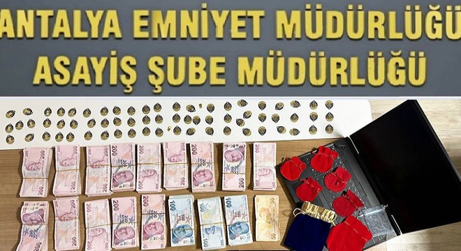 İl Emniyet Müdürlüğü Asayiş Şube Müdürlüğü ekipleri, kuyumculara sahte altın satarak doldırıcılık yapıldığını tespit etti. Ekipler, S.K., A.E.K. ve M.Ç'nin Antalya'da kuyumculuk yapan 7 farklı kuyumcuyu toplam 60 bin lira değerinde sahte gram altın satarak dolandırdığını belirledi. S.K., A.E.K. ve M.Ç.'yi yakalarak gözaltına alan ekipler, şüphelilerin otel odasında ve kiraladıkları araçta yapılan aramada, 195 bin lira, 87 gram sahte altın, cep telefonu ve dijital meteryaller ele geçirdi.