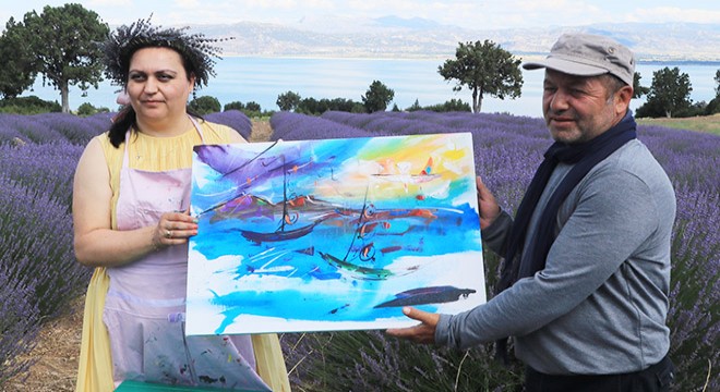 Burdur Gölü'ne karşı lavanta tarlasında resim yapmanın güzel bir duygu olduğunu anlatan Keziban Ertuğrul Yıldırım, "Bu yıl 5'incisini gerçekleştirdiğimiz serginin rotası Lisinia oldu. Su hayattır. Bu yıl ve geçen yıl doğanın önemini daha çok anladık. Yaptığım resimde suya, susuzluğa, dünyayı korkutan bu krize dikkat çekmeye çalıştım" diye konuştu.