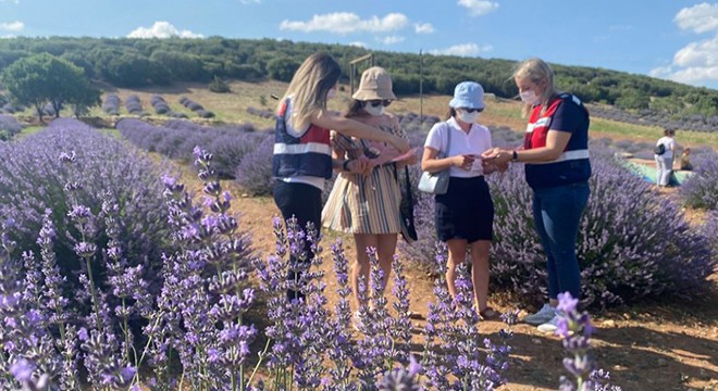 Isparta İl Jandarma Komutanlığı Aile İçi Şiddetle Mücadele ve Çocuk Kısım Amirliği ekipleri, Keçiborlu Kuyucak Köyü'nde bulunan lavanta bahçelerini ziyarete gelen yerli ve yabancı turistler ile çalışan kadınlara, KADES uygulaması hakkında bilgilendirme yapıyor. Ekipler, kadınlara KADES tanıtım broşürleri dağıtıyor. Ayrıca lavanta bahçelerini ziyarete gelen yabancı turistler için uygulamanın beş farklı dilde kullanıldığının da tanımı yapılarak, cep telefonlarına yükletilmesi sağlanıyor.