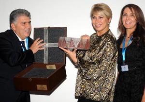 Konuşmanın ardından KONYSİAD Başkanı Emin Altıner, yönetim kurulu üyeleriyle birlikte Leyla Alaton'a, Bektaşi kültüründe Bektaşi dergahına teslimiyeti simgeleyen 12 köşeli 'teslim taşı' hediye etti.