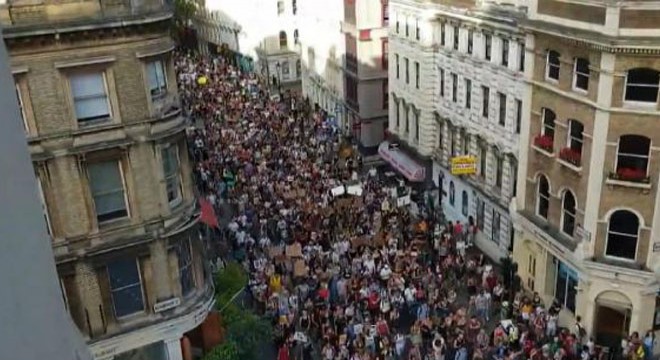 Başkent Londra’nın Westminster şehrinde bulunan ve İngiltere Başbakanının resmi konutu ve devlet ofislerinin bulunduğu Downing Caddesi yakınlarında toplanan yüzlerce kişi, Boris Johnson’ın İngiltere Başbakanı olmasını protesto etti. Görevlendirilen polislerin, caddeyi korumaya alarak, giriş çıkışları engellediği belirtildi. Öte yandan, caddede bulunan devlet ofislerindeki ya da resmi konutlardaki yetkililerin ise özel çıkışları kullanarak ulaşımlarını sağladıkları belirtildi.