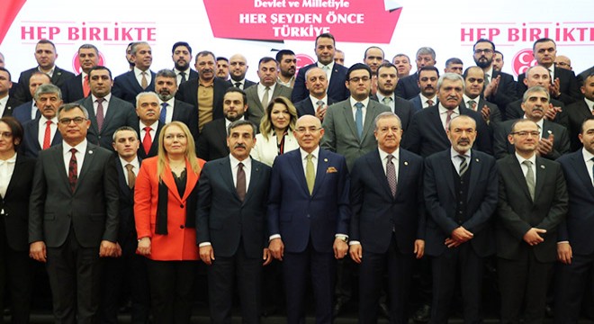 MHP'nin 36 Ankara milletvekili adayı isimleri okunarak tek tek sahneye davet edildi ve fotoğraf çektirildi.