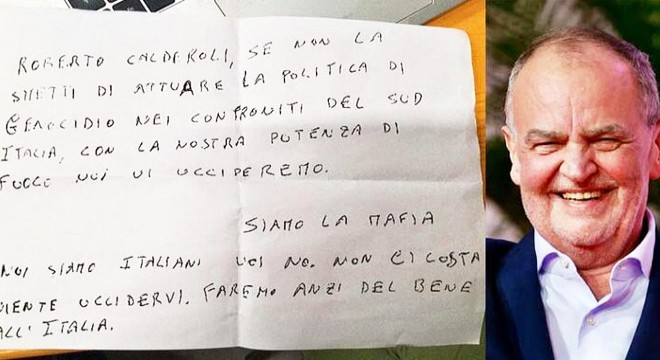 İtalya Bölgesel İşler ve Özerklik Bakanı Roberto Calderoli, dün yaptığı açıklamada “Güney'e karşı soykırım politikasını uygulamaktan vazgeçmezseniz, sizi ateş gücümüzle öldüreceğiz. Biz mafyayız, seni öldürmenin bize hiçbir maliyeti yok” yazan bir ölüm tehdidi aldığını duyurdu. Bakan Calderoli tehdidin yazılı olduğu kağıdın bir görselini paylaşarak “Tehditlerden korkmuyorum, ürkmüyorum ve bölgesel özerkliğe ulaşana kadar devam edeceğim. Daha sonra da traktörümle emekli olacağım” dedi. Bakan Calderoli, İtalya'da her bölge için farklı özerklik çalışmalarını yürütmekte ve bu durum eleştirilere neden olmaktaydı.
