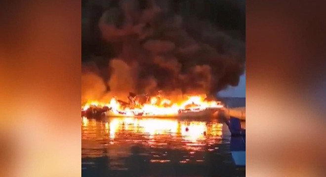 Tatil cenneti Maldivler'de hareketli saatler yaşandı. Limanda demirlenmiş sürat tekneleri, deniz ambulansı ve 2 sandal gece saatlerinde kundaklandı. Limanda demirlenmiş sürat tekneleri, deniz ambulansı ve 2 sandal gece saatlerinde ateşe verildi. Alevlerin ve yoğun dumanın kapladığı limandaki o anlar amatör kameralar tarafından kaydedildi.