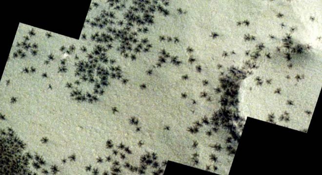 Bu "örümceklerin", güneş ışınlarının Mars zeminindeki karbondioksit buzunu eriterek gaz haline getirmesi ve bu gazla beraber kurum gibi çeşitli koyu renkli maddelerin zemine çıkmasıyla oluştuğu açıklandı.