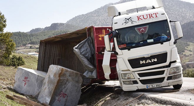 Kaza, öğle saatlerinde Eğirdir'e bağlı Ağılköy virajında meydana geldi. Bir mermer ocağından yüklediği tonlarca ağırlıktaki mermer blokları Burdur'a götürmek üzere yola çıkan M.P. yönetimindeki 15 DJ 892 plakalı TIR, Ağılköy virajını geçtikten sonra sürücüsünün kontrolünden çıktı. TIR'ın dorsesinin yan yattığı kazada sürücü ise yara almadan kurtuldu.