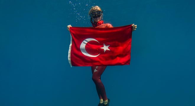 Dünya Serbest Dalış Rekortmeni Şahika Ercümen, Türk Silahlı Kuvvetleri'nın (TSK) Antalya Kaş'taki batık tankına Türk bayrağıyla 30 Ağustos Zafer Bayramı kapsamında "Zafer Anı Dalışı" yaptı.
