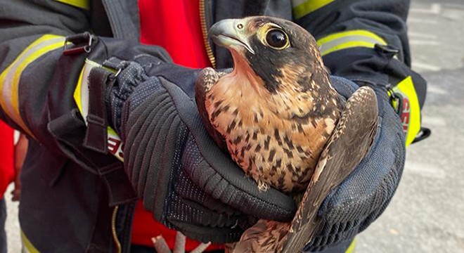 Menderes Mahallesi'nde ayaklarındaki misinayla çam ağacına takılan gökdoğanı görenler itfaiyeye haber verdi. Gelen ekipler, güvercine tuzaklanan misinaya ayakları dolanan gökdoğanı kurtardı. İtfaiye ekiplerinin müdürlüğe götürdüğü gökdoğanın ayağındaki misina ipleri kesildi. İtfaiye erlerinin su içirdiği gökdoğan daha sonra gökyüzüne salındı.