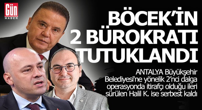Antalya Büyükşehir Belediyesi'ne yönelik 'rüşvet' soruşturması kapsamında 22 Temmuz'da saat 07.30 sıralarında yeni bir operasyon düzenlendi. Belediye binasına gelen Kaçakçılık ve Organize Suçlarla Mücadele Şubesi (KOM) ekipleri, Genel Sekreter Yardımcısı Serkan Temuçin, İmar Şube Müdür Vekili Tuncay Kaya ile Bilgi İşlem Destek Elemanı Halil K.'yı gözaltına aldı. Emniyetteki işlemlerinin ardından 3 şüpheli bugün sabah saatlerinde adliyeye sevk edildi. Cumhuriyet Savcılığı, Serkan Temuçin ile Tuncay Kaya için tutuklama, Halil K. İçin ise adli kontrol talebinde bulundu. Nöbetçi hakimlik, Temuçin ve Kaya'nın tutuklanmasına, Halil K.'nın adli kontrolle serbest bırakılmasına karar verdi.